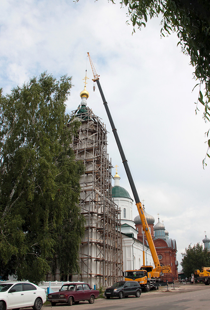 24 июля на колокольню восстанавливающийся церкви в честь Покрова Божией Матери в селе Водоватово подняты купол и крест.